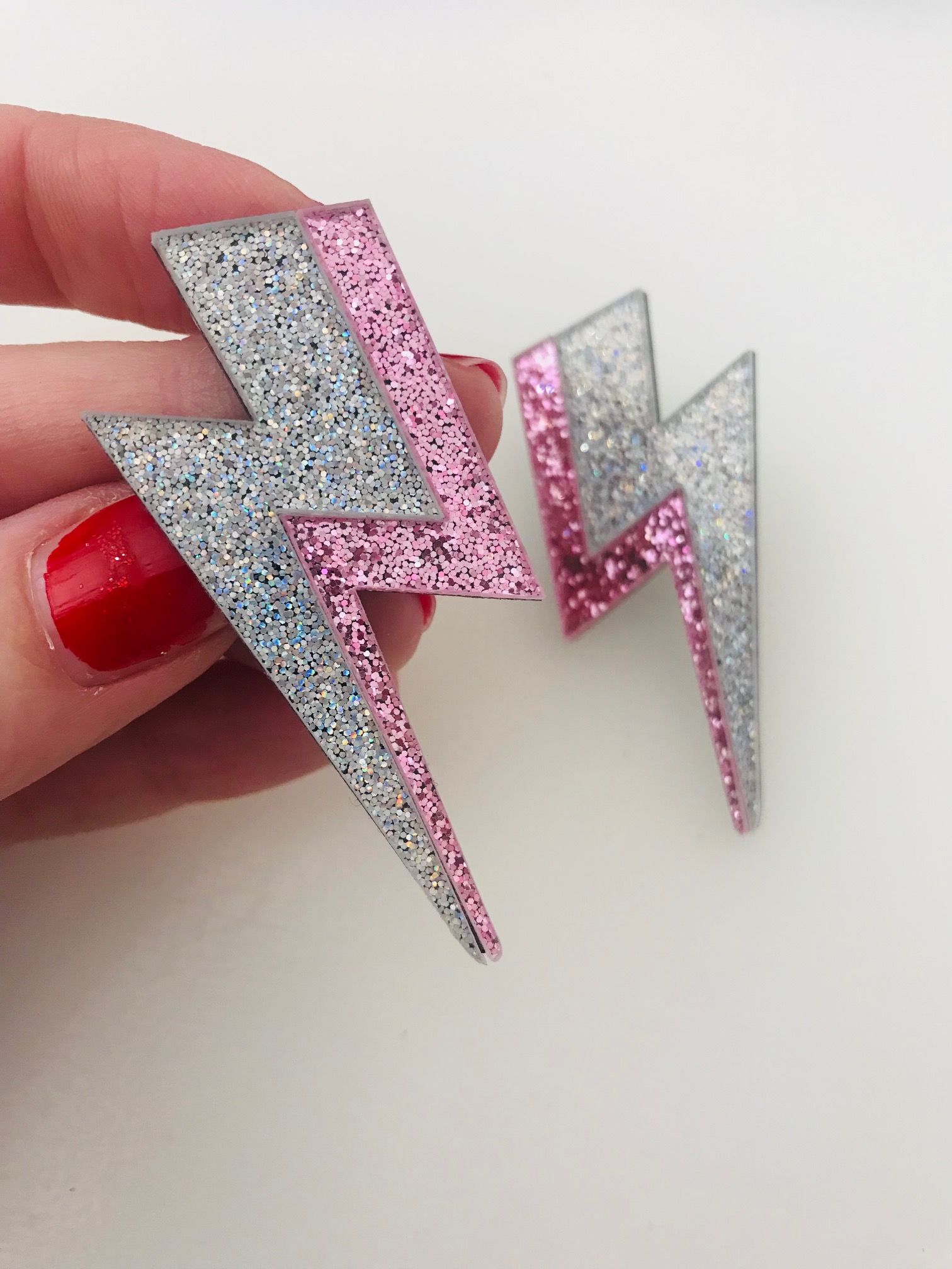 Boucles d’oreilles éclair rose argenté