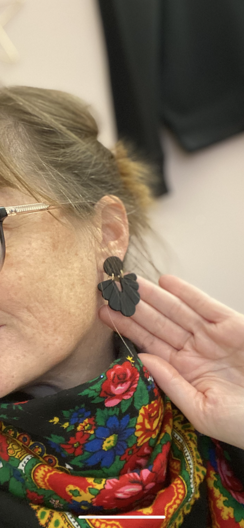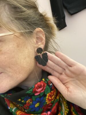 Boucles d’oreilles éventail noir : bijou graphique et élégant