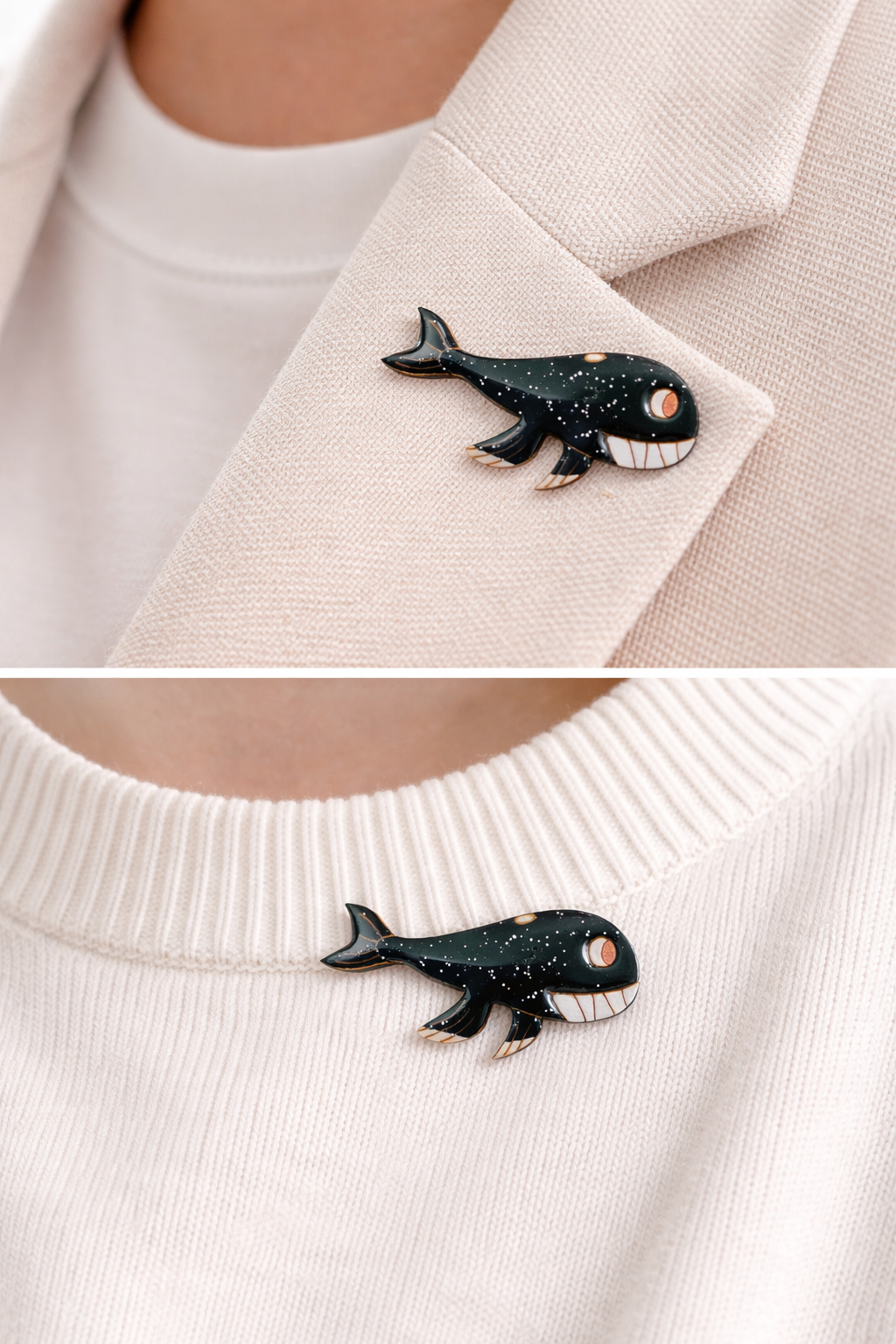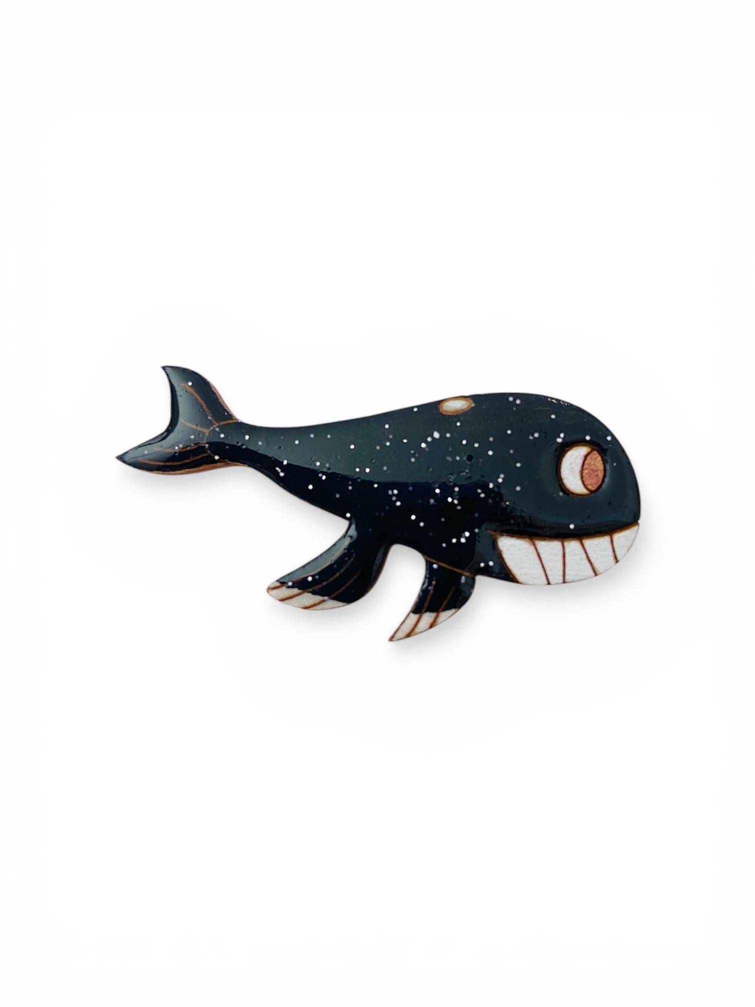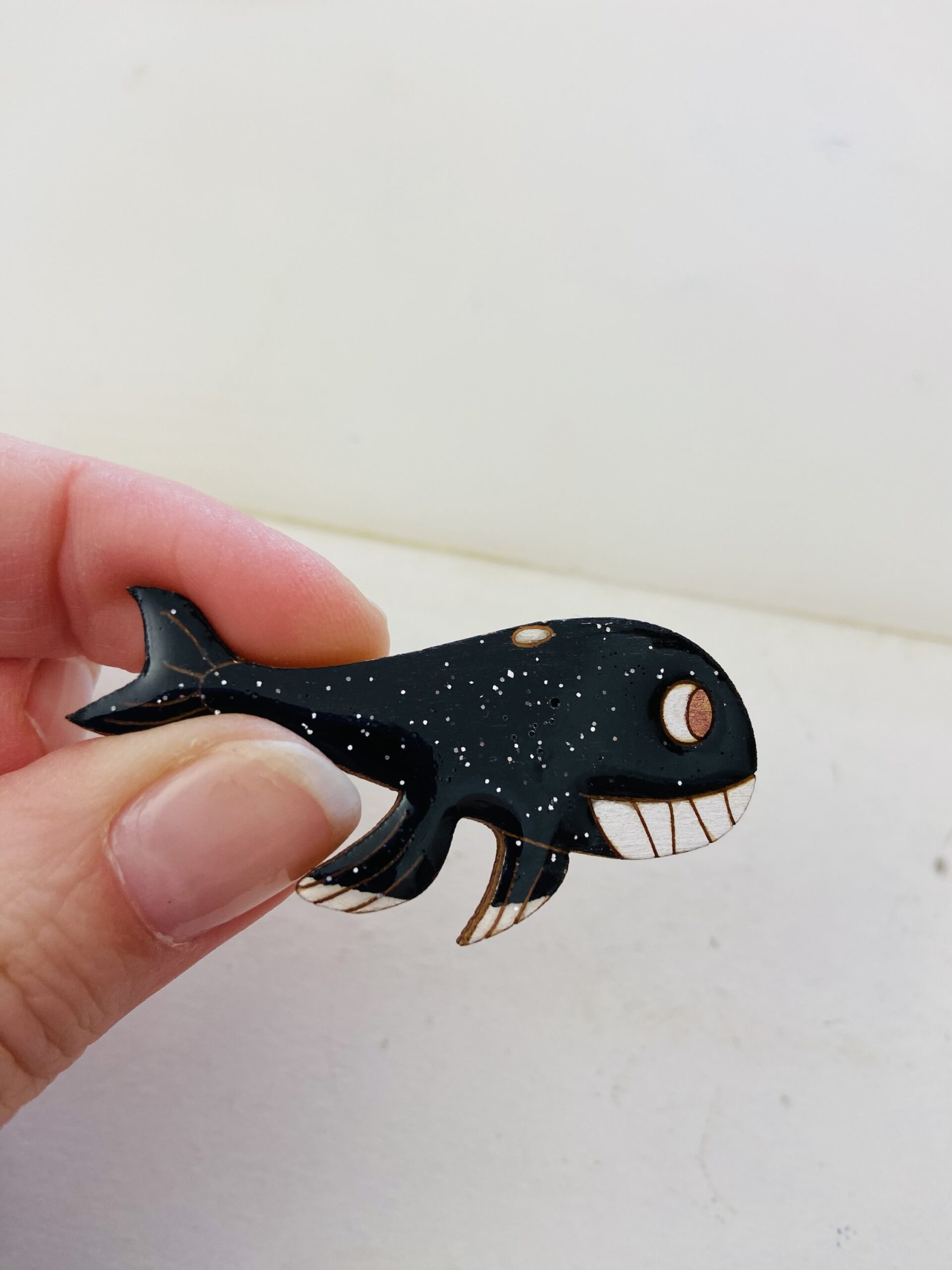 Broche baleine noire pailletée : une création artisanale unique